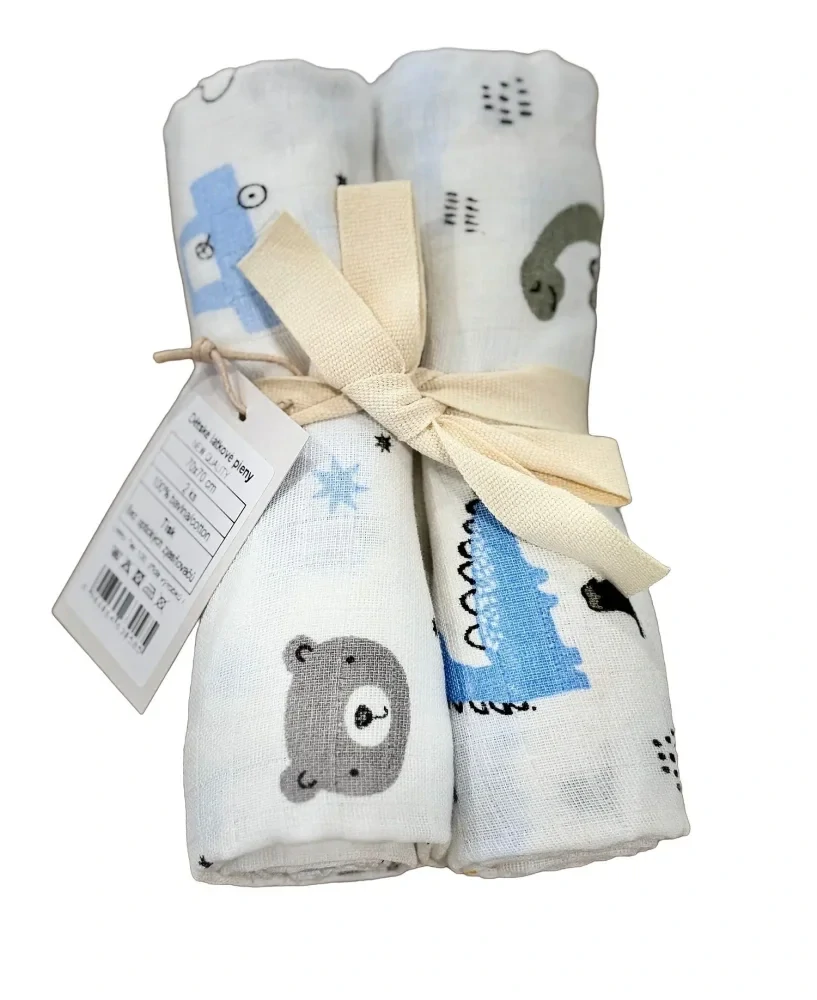 Kvalitní bavlněná plenka s potiskem - Tetra Premium, 70x70 cm - 2 ks v balení - méďa + dinosaurus PREM